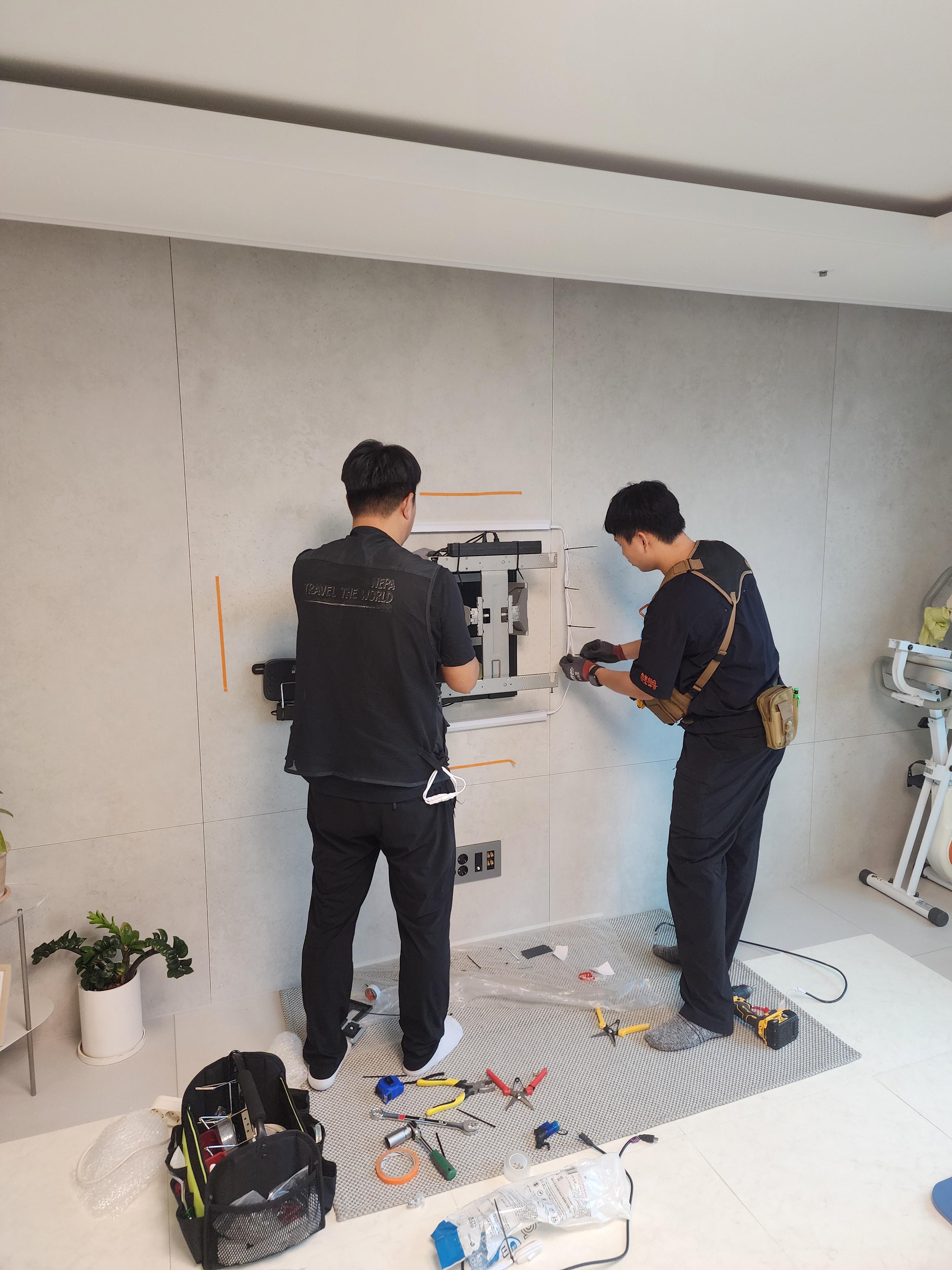 저희는 입주 박람회 협력 업체 중 룸플러스에서 진행했는데요, 약속한 시간에 두 분이서 오셔서 깔끔하고 안전하게 설치 진행해 주셨습니다.